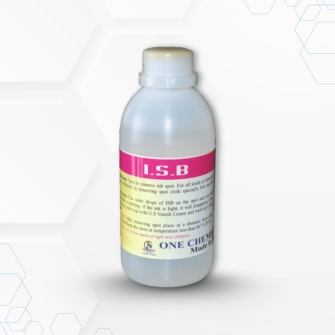 আই.এস.বি. একটি শক্তিশালী দ্রবণ যা সব ধরনের কাপড় থেকে কালি ও গভীর কালি দাগ দূর করার জন্য বিশেষভাবে তৈরি করা হয়েছে। আপনি হালকা দাগ বা জেদি কালি দাগ নিয়ে কাজ করুন না কেন, এই পণ্যটি কার্যকরভাবে দাগ গলিয়ে ফেলে এবং কাপড়ের চেহারা পুনরুদ্ধার করে।